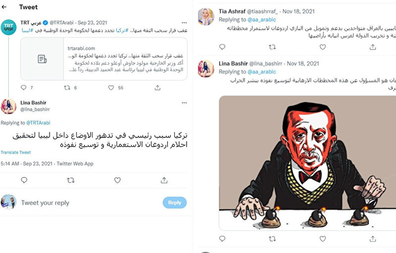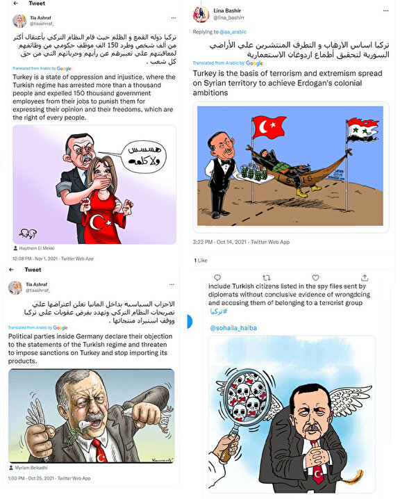 - "Türk haber kanalları konusunda hassaslar. TRT Arabi gibi hesapların tweetlerine yanıt veriyorlar. Kendilerini, Arap dünyasındaki Türk etkisine karşı koyuyor olarak görüyorlar."