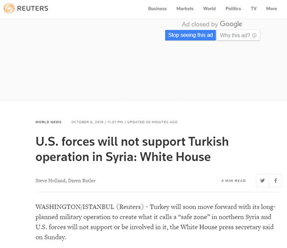 Batı basını ABD'nin Suriye'den çekilme kararına geniş yer verdi. Türkiye'nin Suriye'nin kuzeyinde başlatacağı operasyon ve ABD'nin bölgeden çekilme kararını manşetten duyuran batılı kaynaklar, "ABD PYD'li müttefiklerini terk etti", "Trump Türkiye'nin operasyonuna yol açıyor" başlıklarını kullandı.