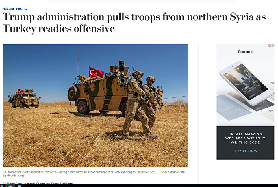 Washington Post gazetesi de haberi "Türkiye saldırıya hazırlanırken, Trump yönetimi Suriye'nin kuzeyinden askerlerini çekiyor" başlığıyla duyurdu.
