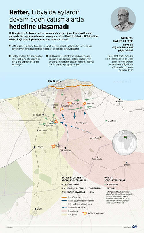 İşler, Trablus'taki BM'nin tanıdığı meşru aktörlerin, 4 Nisan'dan bu yana Libya'nın doğusunda gayrimeşru, silah zoruyla yönetimi ele geçirmeye çalışan emekli asker Halife Hafter'e bağlı birlikler karşısında ciddi başarılar elde ettiğini hatırlattı.