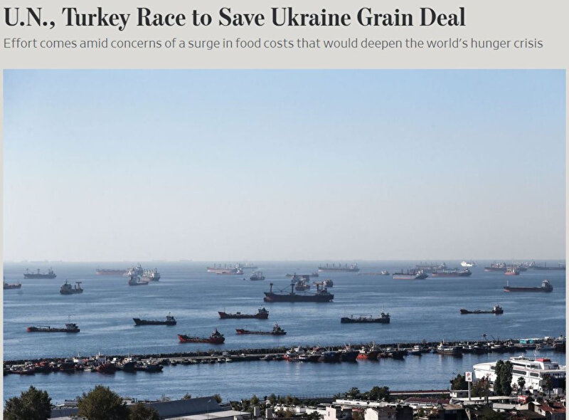 Moskova yönetiminin Tahıl Koridoru Anlaşması'ndan çekilmesi sonrası Türkiye, Ukrayna ve Birleşmiş Milletler (BM) harekete geçti. Küresel pazarlara gıda aktarılmasını sağlayan anlaşmayı canlı tutmak adına ortaya konulan çaba, dünyanın gündemine oturdu. Wall Street Journal (WSJ) gazetesi, BM ve Türkiye'nin, tahıl anlaşmasını sürdürmek için mücadele ettiğini yazdı.