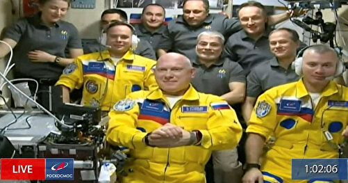Dünya basınına ‘Ukrayna Bayrağı renklerinde uzay kıyafeti giydikleri’ için tartışma konusu olan 3 Rus kozmonottan Oleg Artemiev, Uluslararası Uzay İstasyonu’ndan (ISS) canlı olarak Moskova belediye meclisi toplantısına bağlandı. Bağlantı sırasında Artemiev’in sarı hakim renkli kıyafetini değiştirerek Rus bayrağı hakim koyu mavi kıyafet giydiği görüldü.