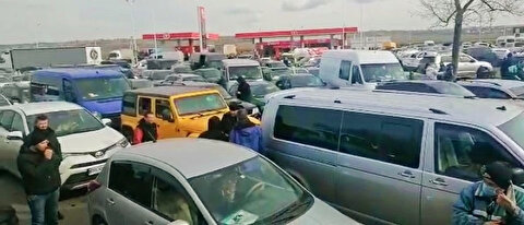 Ülkeyi terk etmek isteyenler Orlivka Sınır Kapısı’nda 20 kilometre uzunluğunda araç kuyruğu oluşturdu.