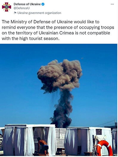 Ukrayna Savunma Bakanlığı, dün Kırım’da meydana gelen patlamanın fotoğrafını paylaşarak, “Kırım, turist sezonu için uygun değildir” ifadelerini kullandı.