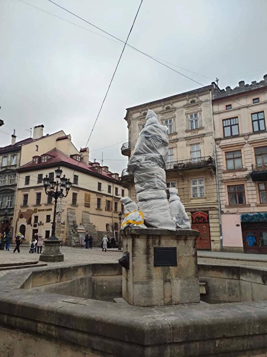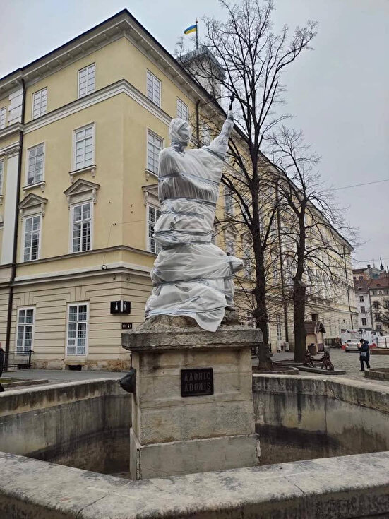 Ukraynalı yetkililer, Rusya'nın Lviv kentine olası saldırılarına karşı tarihi eser ve yapıları korumaya aldı.