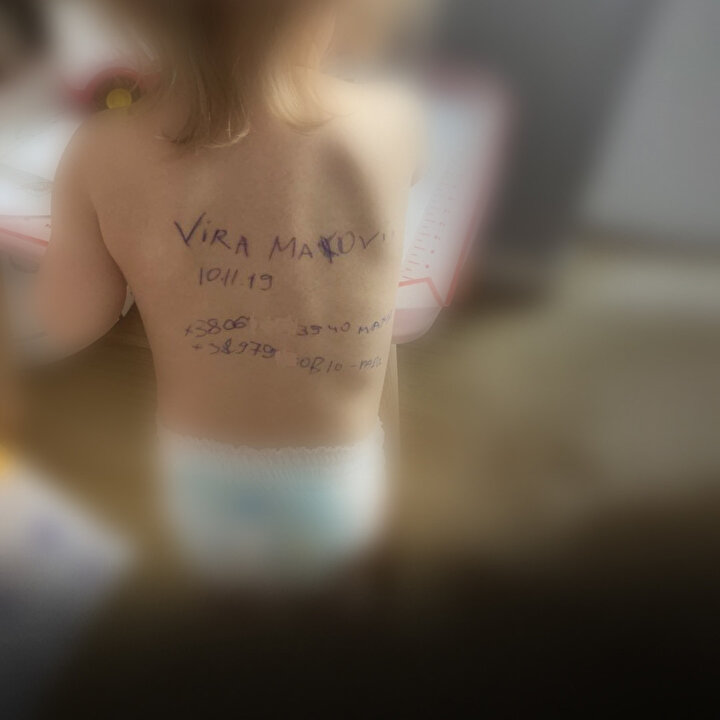 Ukrayna'da anneler, çocuklarının ölmesi durumunda kimlik tespiti yapılabilmesi için adlarını, doğum tarihlerini ve kendi telefon numaralarını çocuklarının bedenine yazıyor. Aynı zamanda çocuklarının kıyafetlerine kan gruplarını belirten çıkartmalar yapıştırıyor.