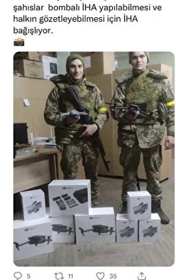 Ukrayna askerleri geçtiğimiz günlerde hem vatandaşlar hem de askerler tarafından kamikaze drone saldırıları için mini İHA’ların kullanıldığına dair görselleri twitter'dan paylaşmıştı