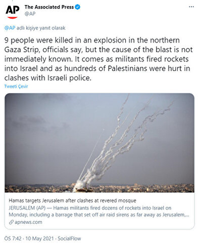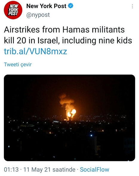 New York Times gazetesi, herhangi bir neden belirtmeden "Gazzeli militanlar Kudüs’e roket fırlatıyor" başlığını attı.