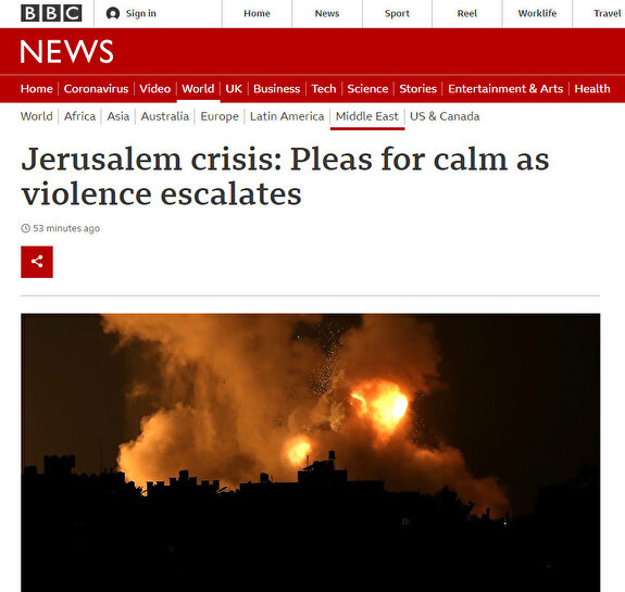BBC, "Kudüs krizi: Şiddet tırmanırken sükunet dileği" başlığıyla saldırıları Filistinlilerin kışkırttığına dair bir haber yayımladı.