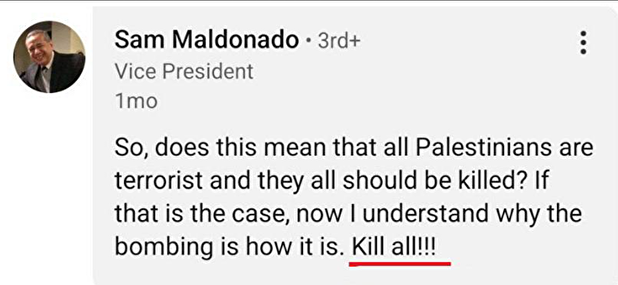 Bebek kolonyası da üreten dünyanın en büyük kimya ve kozmetik firmalarından olan Johnson & Johnson'ın Başkan Yardımcısı Sam Maldonado, terör devleti İsrail'in Gazze'de sürdürdüğü katliama açık açık destek vermiş, Tevrat'ta yer alan 'Amalek' kavmi ile ilgili metinden alıntı da yapan Maldonado bebek katliamlarını meşru göstermeye çalışmıştı.