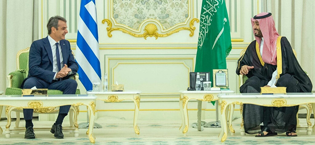 Yunanistan Başbakanı Kiryakos Miçotakis, Suudi Arabistan Veliaht Prensi Muhammed bin Selman ile Suudi Arabistan'ın başkenti Riyad'daki Al Yamamah Sarayı'nda bir araya geldi.