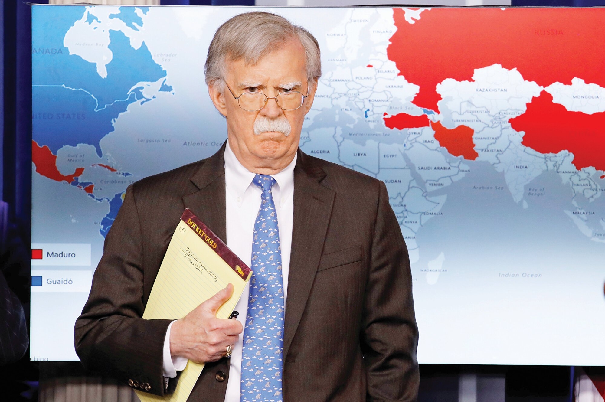 - ABD Başkanı Donald Trump’ın Ulusal Güvenlik Danışmanı John Bolton’un Beyaz Saray’daki toplantıda elinde tuttuğu defterde “Kolombiya’ya 5 bin asker” notunu düşmesi dikkat çekti. Not, ABD’nin Kolombiya üzerinden Venezuela’ya işgal mesajı olarak değerlendirildi. Öte yandan Bolton bir kez daha Venezuela ordusuna darbe çağrısında bulundu. Bolton, ordu içerisinde birçok düzeyde komutanın da artık Guaido’dan yana olması ve Venezuela ordusunun “ülkede barışçıl bir geçiş süreci için” Guaido’ya destek vermesi gerektiğini savundu. John Bolton, “Venezuela konusunda tüm seçenekler masada” açıklaması da yaptı.