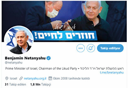 - İsrail Başbakanı Binyamin Netanyahu, Beyaz Saray’da sayılı günleri kalan ABD Başkanı Donald Trump’ın yer aldığı fotoğrafı Twitter hesabının arka planından kaldırdı. Netanyahu’nun, Twitter hesabının arka planından, başkanlık koltuğunda sayılı günleri kalan Trump’ın bulunduğu fotoğraf kaldırılarak yerine İsrail Başbakanı’nın yeni tip koronavirüs (Kovid-19) aşısı olurken çekilen fotoğrafı eklendi. İsrail Başbakanı, 3 Kasım 2020’de yapılan başkanlık seçimini kaybetmesine rağmen uzun süre Trump’ın fotoğrafını Twitter hesabında arka plan olarak kullanmaya devam etmişti.