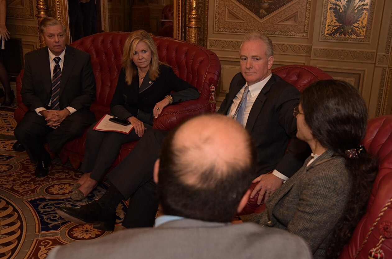 Türkiye'ye karşı savunduğu yaptırım tehditleriyle bilinen ABD'li Güney Carolina Senatörü Lindsey Graham terör örgütü PKK/YPG'nin paravan olarak kullandığı SDG'nin sözde Eş Başkanı İlham Ahmed ile bir araya geldi. Maryland Senatörü Chris Van Hollen'in Twitter'dan duyurduğu buluşmada ABD'li, senatörlerin Ahmed ile bir toplantı gerçekleştirdiği görüldü.
