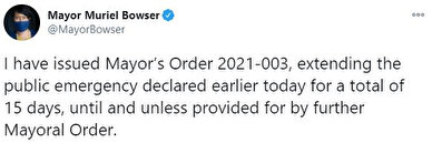 Washington DC Belediye Başkanı Muriel Bowser sosyal medya hesabından yaptığı açıklamada, başkentte yaşanan olaylar nedeniyle OHAL kararının 15 gün uzatıldığını duyurdu.