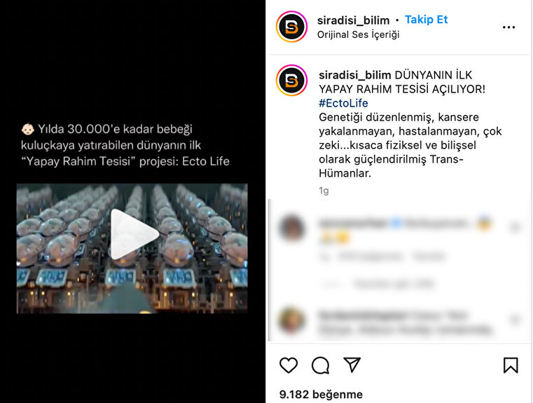- "Dünyanın ilk yapay rahim tesisi açılıyor! Genetiği düzenlenmiş, kansere yakalanmayan, hastalanmayan, çok zeki. Kısaca fiziksel ve bilişsel olarak güçlendirilmiş trans-hümanlar yakında."