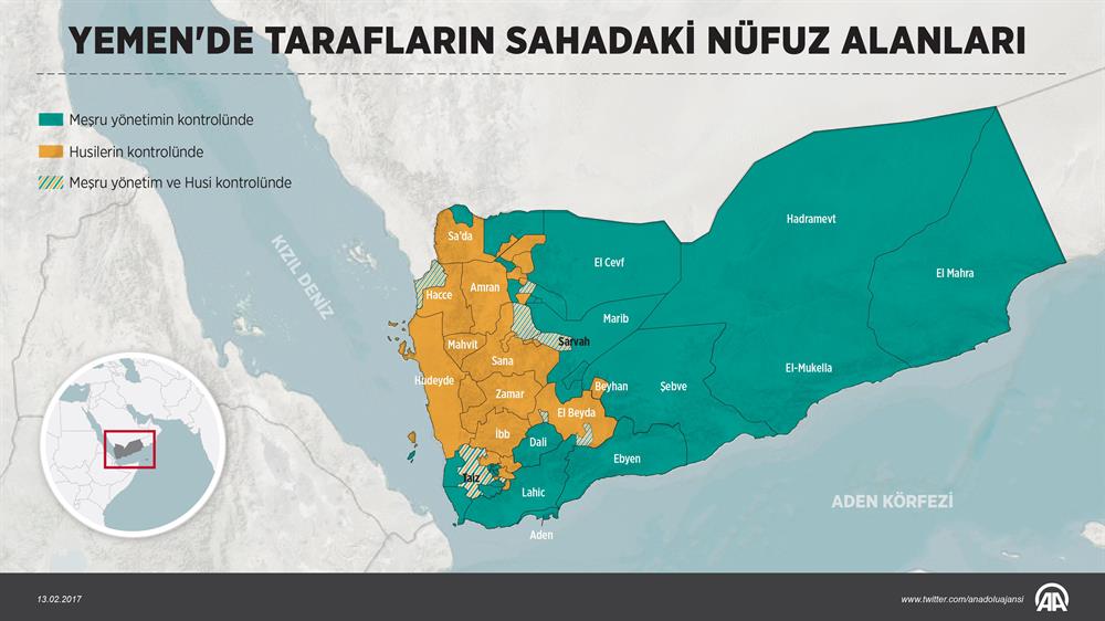 Yemen'de 2011 yılında yaşanan devrimin ardından başlayan iç savaş, ülkeyi büyük bir krize sürüklerken Husilerin kontrolünde bir defacto durumun ortaya çıkmasına neden oldu. 2016 yılının ikinci yarısında yaşanan şiddette azalma yaşansa da tarafların nüfuz alanlarını lehine çevirme mücadelesi devam ediyor.