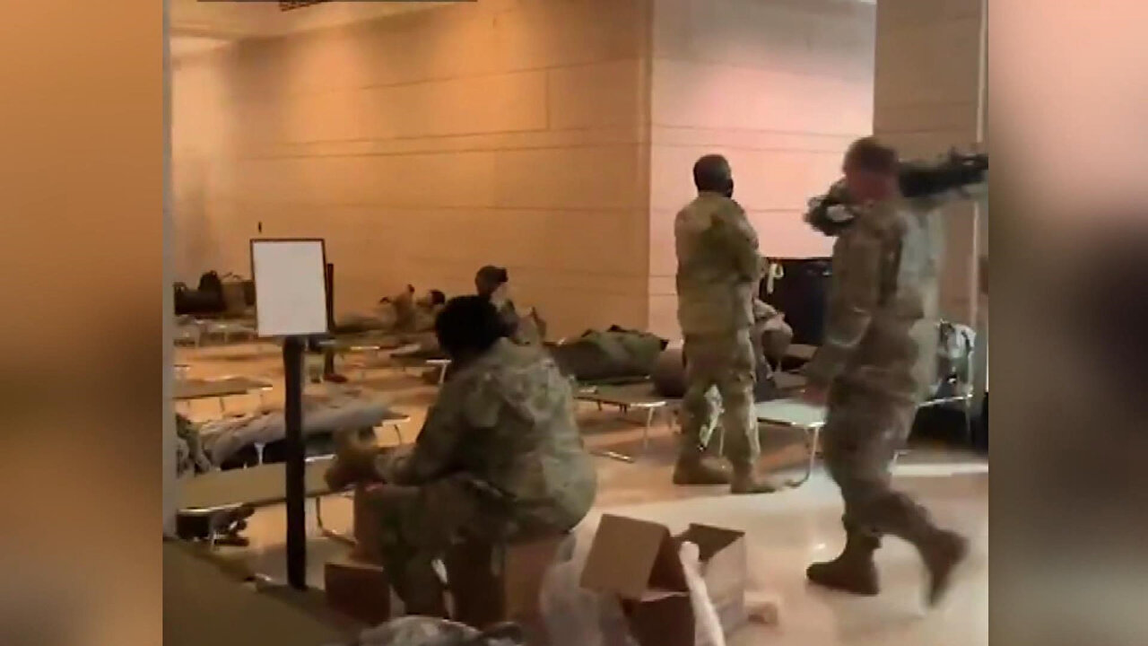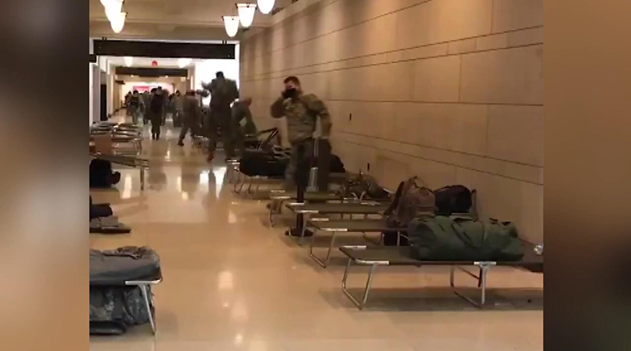ABD'nin başkenti Washington'da Joe Biden'ın yemin gününden önce alınan güvenlik, nedeniyle başkente gönderilen ABD ulusal muhafızlar gelen tepkiler nedeniyle bu kez Meclis'te sedyeyle görüntülendi.