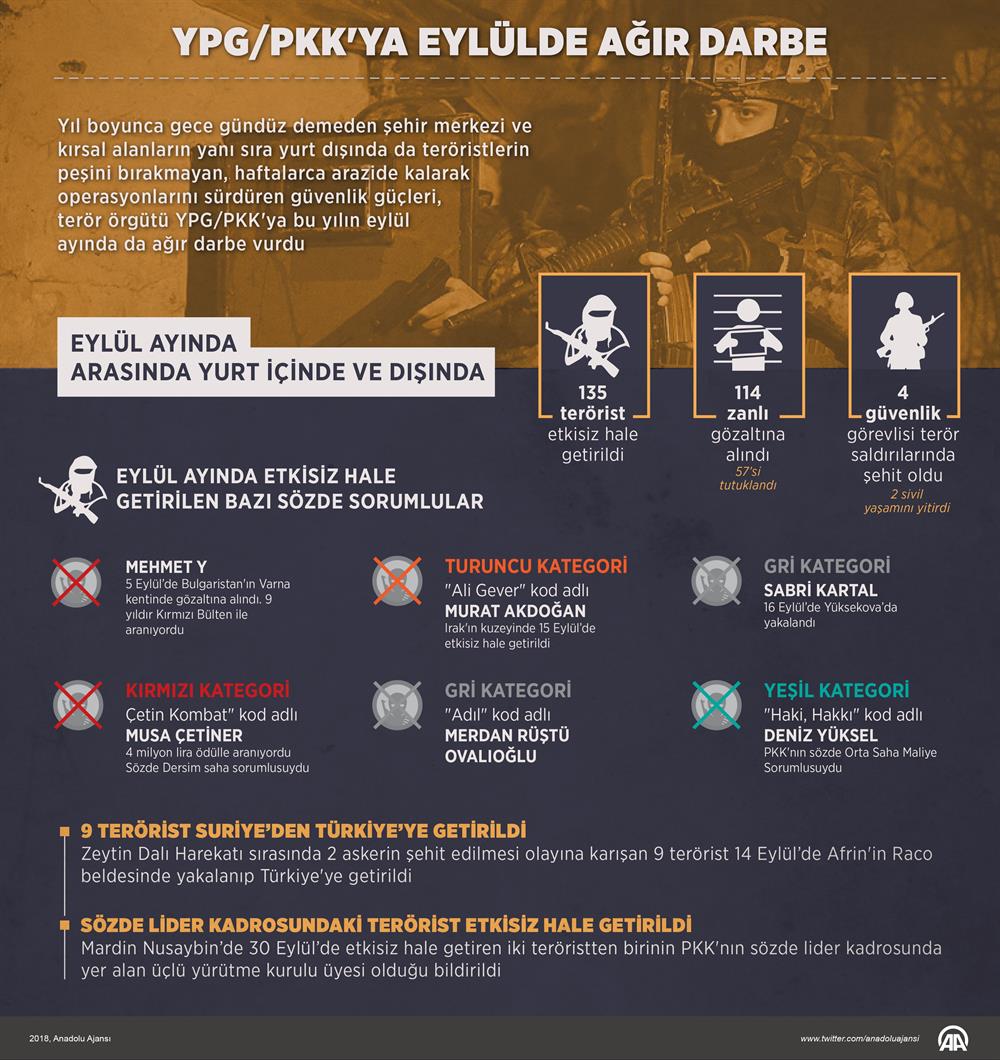 - Öte yandan örgüt, Zeytin Dalı Harekatı ile işgalinden kurtarılan Afrin'den kaçarak Münbiç'e gelen unsurlarına eğitim veriyor. Eğitim, ABD desteğiyle, sözde SDG çatısı altında gerçekleştiriliyor. YPG/PKK ayrıca, Münbiç'in Fırat Kalkanı Harekatı bölgesine sınır konumdaki noktalara askeri yığınak yapıyor.