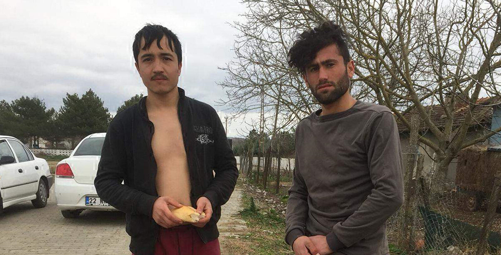 Göçmenlerden birinin omzunda darp izleri bulunurken, diğerinin ise pantolonsuz olduğu görüldü. İki gündür yemek yemediklerini söyleyen göçmenlere, diğer göçmenler yanlarında bulunan kıyafetleri verdi.