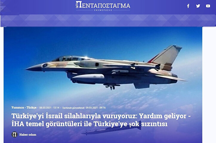 Sık sık Türkiye’yi hedef alan haberlerle okuyucularının karşısına çıkan Yunanistan merkezli Pentapostagma gazetesi, yeni bir provokasyona imza attı. Gazetede yer alan haberde, Fransa ve İsrail’den alınacak yardımlarla ordunun güçlendirileceği ifade edildi. Ağır tahrike imza atan gazete, "Türkiye'yi İsrail silahlarıyla vuracağız. Fransa'dan alacağımız füzeler Ankara'daki hedefleri rahatlıkla vurabilir" ifadelerine yer verdi.