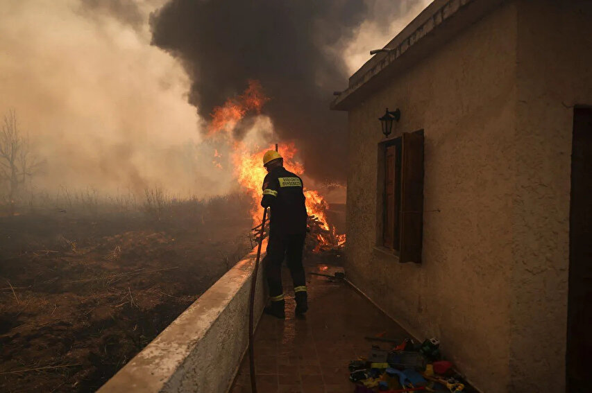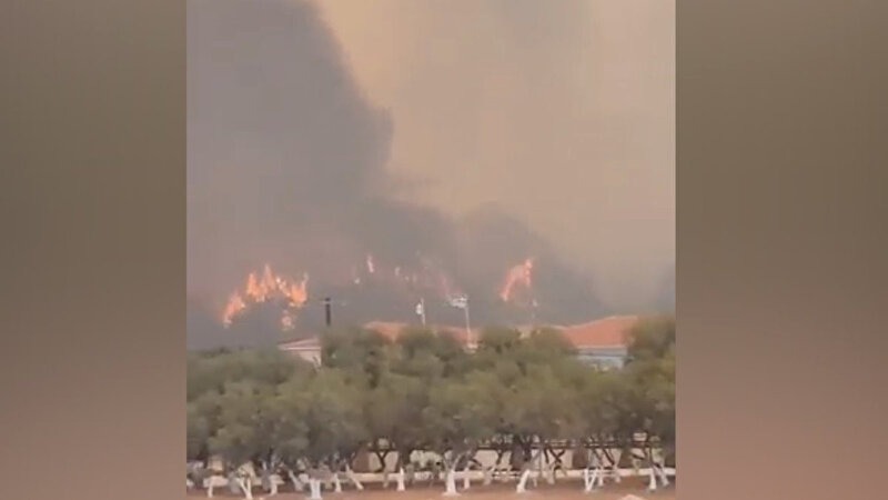 Yunan basınındaki haberlere göre, kontrol altına alınamayan yangın, geniş ormanlık alanın bulunduğu Vrisa Bölgesi'ne doğru yayılmaya başladı.