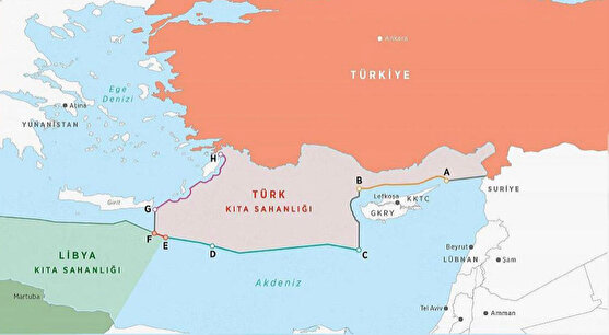 - "Başka bir ülkenin önünü kapatmama şartına ek olarak, Yunanistan’ın da imzaladığı 1982 tarihli BM Deniz Hukuku Sözleşmesi’nin (BMDHS) 46. Maddesi 'Adaların tam yetkiye sahip olabilmesi için ilgili ülkenin arşipellerden oluşması' şartını yani tamamen ya da büyük ölçüde adalardan müteşekkil bir ülke olması şartını getirmiştir. Yunanistan görünenin aksine bir adalar ülkesi değildir. Ülkenin yüzölçümünün sadece yüzde 17'si ada, adacık ve kayalıklardan oluşmakta, geri kalanı anakarada bulunmaktadır. Dolayısı ile Türkiye-Libya arasındaki Kıta Sahanlığı/MEB sınırlandırma anlaşması hususunda Girit başta olmak üzere bahsi geçen Yunan adalarının her birinin ancak karasuları genişliği nispetinde bir yetki alanına sahip olması mümkündür"