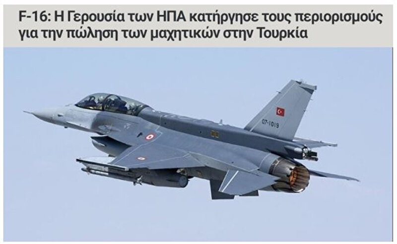 "Dikaiologitika.gr" sitesinde yer alan haberde, "Senato, F16'nın Türkiye'ye satışına ilişkin kısıtlamaları kaldırdı." denildi.