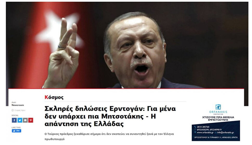 Yunan Proto Thema gazetesi de benzer ifadelerle haberi görerek, "Türk Cumhurbaşkanı Erdoğan'dan büyük meydan okuma: 'Miçotakis artık benim için yok'" ifadelerini kullandı.