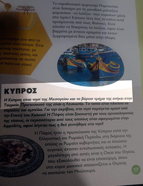 Yunanistan’da Psihogios Yayınevi tarafından yayımlanan "Öğreniyorum ve keşfediyorum: Avrupa" başlıklı coğrafya ile ilgili dergide yer alan ifadelerin sosyal medyada yayılması üzerine, dergilerin piyasadan toplatılmasına karar verildi.