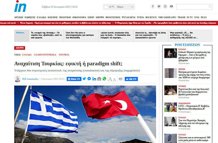 Yunan medyasından İn.gr haber sitesinde “Türkiye'nin Müdahalesi: Mümkün mü, paradigma kayması mı?” başlıklı bir analiz yayımlandı. Yunanistan Dışişleri Bakanlığı Danışmanı ve Yunanistan Avrupa ve Dış Politika Vakfı (ELIAMEP) Danışma Kurulu Üyesi Emekli Yunan Büyükelçi Profesör Panagiotis İoakimidis tarafından kaleme alınan yazıda, Atina yönetiminin Türkiye’ye karşı attığı adımların hiçbir işe yaramadığı ve yaramayacağı itirafında bulunuldu.