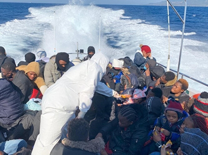 Bölgeye gönderilen Sahil Güvenlik ekipleri tarafından tespit edilen lastik bot içerisindeki 50 düzensiz göçmen kurtarılarak Küçükkuyu beldesindeki Sahil Güvenlik Karakolu’na getirildi. Korona virüs tedbirleri kapsamında tek tek, ateşleri ölçülen düzensiz göçmenlere yiyecek ve giyecek desteği verildi.