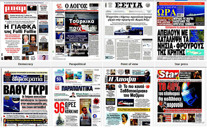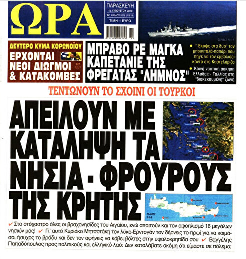 Türkiye'deki gündemin aksine Yunanistan'da ise 'Oruç Reis' sismik araştırma gemimizden başka hiçbir konu konuşulmuyor. Ülkede Twitter'daki gündemlerin tamamı bu konu üzerineyken basın da yalnızca bu konuyu gündemde tutuyor.
