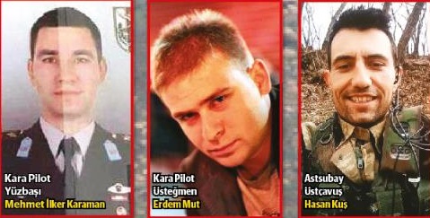 Afrin’in batısındaki Raco kırsalındaki çatışmaya destek operasyonu icra eden milli ATAK helikopterlerinden biri kırıma uğradı. ATAK’ı kullanan 2 pilot da şehit oldu. Şeyh Hadid ve Raco beldeleri arasında Mamal Uşağı kırsalındaki bir vadiye sert iniş yapan taarruz helikopteri ATAK’ta herhangi bir duman ya da patlama belirtisi görülmedi. ATAK’ın düştüğü anlar, bölgede operasyon yürüten ÖSO mensuplarının kamerasına takıldı. Buna göre düşük irtifada, yere oldukça yakın bir konumda arka arkaya ilerleyen 2 ATAK’tan biri, hızla alçalmaya başladı. Havadayken üzerinde bir patlama ya da alev belirtisi görülmeyen ATAK, vadiye çakılarak infilak etti ve daha sonra o bölgeden duman yükseldi. Saat 13.00 sularında gerçekleşen olayda 2 pilotun şehit olduğu bildirildi. Şehitlerin, Kara Pilot Yüzbaşı Mehmet İlker Kahraman ile Kara Pilot Üsteğmen Erdem Mut (32) olduğu öğrenildi. Kırıkkale nüfusuna kayıtlı Mut’un Malatya’da bulunan eşine acı haber verildi. Şehidin Kırıkkale’deki babaevine ise dev Türk bayrağı asıldı. Şehit Yüzbaşı Kahraman’ın da evli ve 2 çocuk babası olduğu öğrenildi.