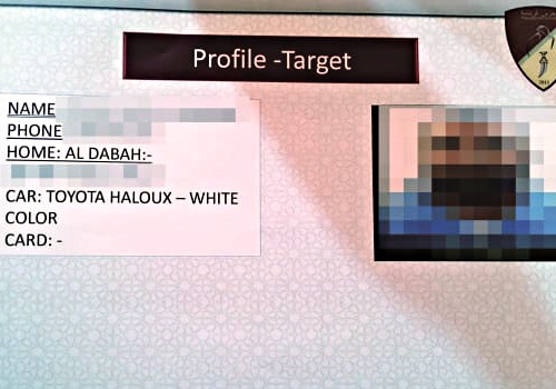 Suikast operasyonlarını yürüten Mızrak’a hedef bilgileri, BAE tarafından oluşturulan ve suç delili sayılabilecek kartlar aracılığı ile veriliyordu. Bu kartlarda suikast yapılacak kişinin adı, telefon numarası, konumu, araba markası vb. bilgiler yer alıyordu. Kartın sağ üst köşesinde ise, Muhammed bin Zayed’e bağlı BAE Ulusal Muhafızlarının logosu bulunuyordu.