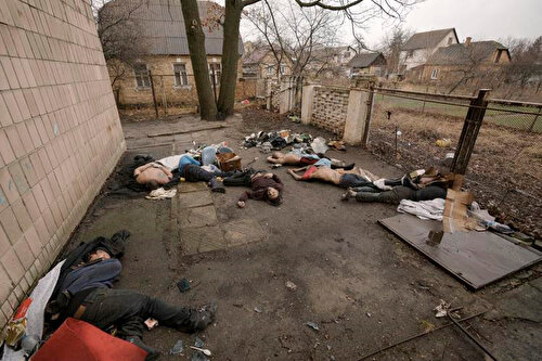 Zelenskiy, ayrıca Rus ordusundan kurtarılan Buça'da yüzlerce ölen ve işkence görenlerle yağmalamaların olduğunu, arazilere mayın döşendiğini, sokaklarda cesetlerin bulunduğunu söyleyerek "Katiller. Cellatlar. Tecavüzcüler. Kendilerine ordu diyen yağmacılar ve yaptıklarından sonra ancak ölümü hak edenler." ifadesini kullandı.