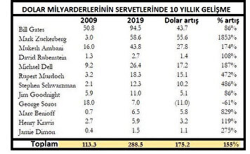 - Aynı dönemde teknoloji alanında faaliyet gösteren Michael Dell 17.2 milyar dolar, medya patronu Rupert Murdoch 15.1 milyar dolar, finansçı Stephen Schwartzman ise 10.2 milyar dolar daha kazandı.