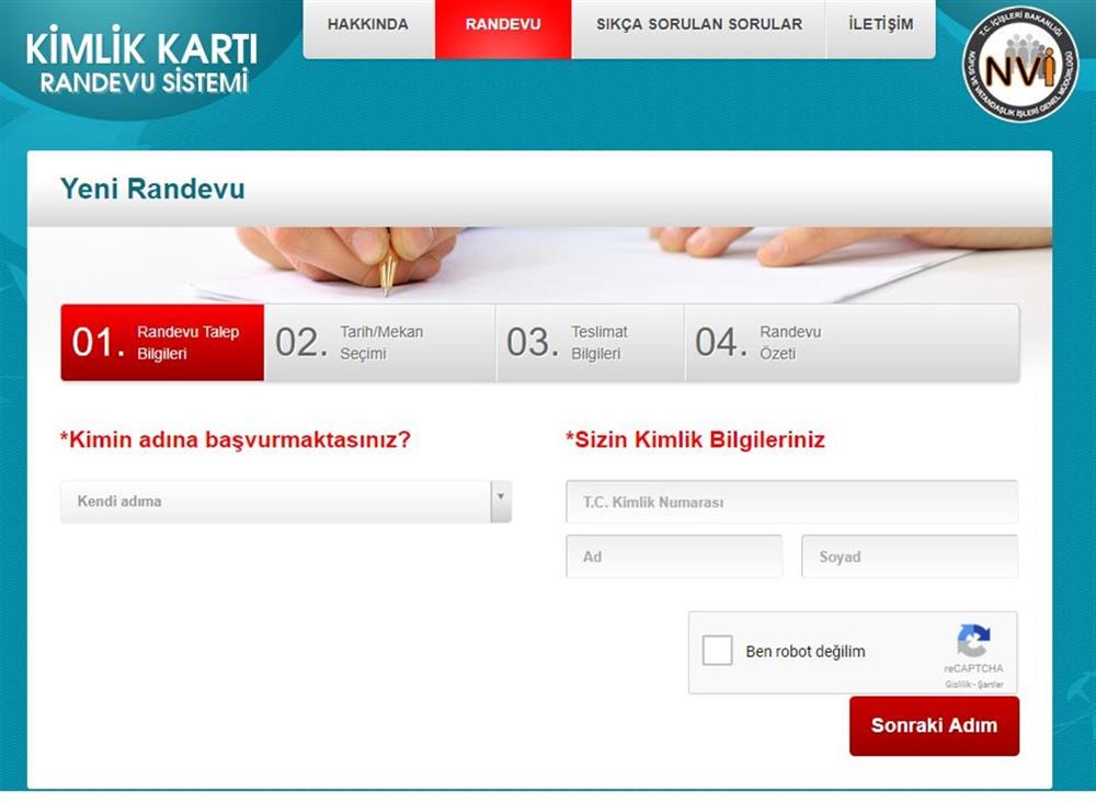 Randevu al butonundan sonra karşınıza çıkan ekrandaki bilgileri doldurduktan sonra randevunuzu almış oluyorsunuz. Randevu günü ve saatinde gittiğiniz zaman, kimlik başvurunuzu yapmış oluyorsunuz.