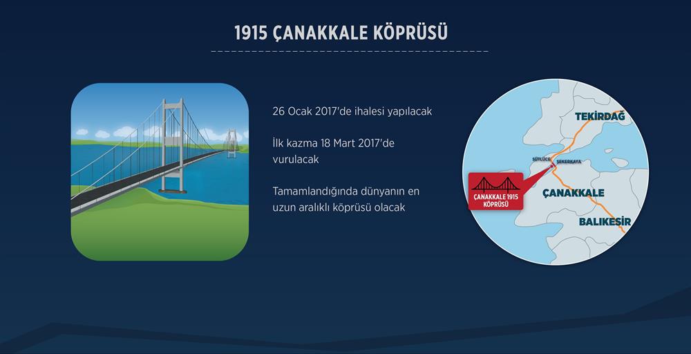 Trakya'dan Ege ve Akdeniz'e uzanan taşımacılık hattında Çanakkale'yi, Marmara Bölgesi'nde vazgeçilmez bir konuma taşıyacak köprü, Gelibolu ile Lapseki arasında yapılacak.