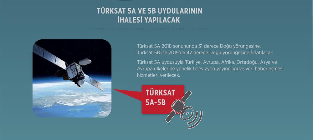 Yerli katkının mümkün olduğu kadar yüksek olacağı Türksat 5A ve 5B uydularına ilişkin sözleşmeleri yaparak, işe başlanması hedefleniyor. Söz konusu uydular için dünyada bu işi en iyi yapan ülkelerin firmalarından teklif alındı.