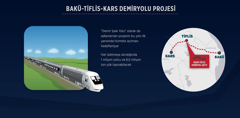 "Demir İpek Yolu" olarak da adlandırılan Bakü-Tiflis-Kars Demiryolu Projesi'nin bu yılın ilk yarısında hizmete açılması planlanıyor.