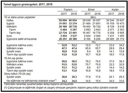 Türkiye İstatistik Kurumunun (TÜİK) "İşgücü İstatistikleri 2018" verilerine göre, Türkiye genelinde işsiz sayısı geçen yıl 2017'ye göre 83 bin kişi artarak 3 milyon 537 bin kişi oldu.