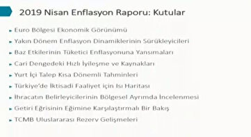 Piyasaların merakla beklediği enflasyon raporu açıklanıdı. Merkez Bankası tarafından açıklanan rapora göre 2019 yıl sonu enflasyon tahmininde değişiklik yapılmadı. Başkan Murat Çetinkaya yıl sonu için enflasyonun yüzde 14,6 şeklinde gerçekleşmesini öngördüklerini söyledi.