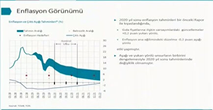 - Gıda enflasyon tahmini yüzde 13'ten yüzde 16'ya yükseltilmiştir. 2020 yıl sonu gıda enflasyonu tahmini yüzde 11 olarak güncellenmiştir. Bir önceki yüzde 10 civarındaydı.