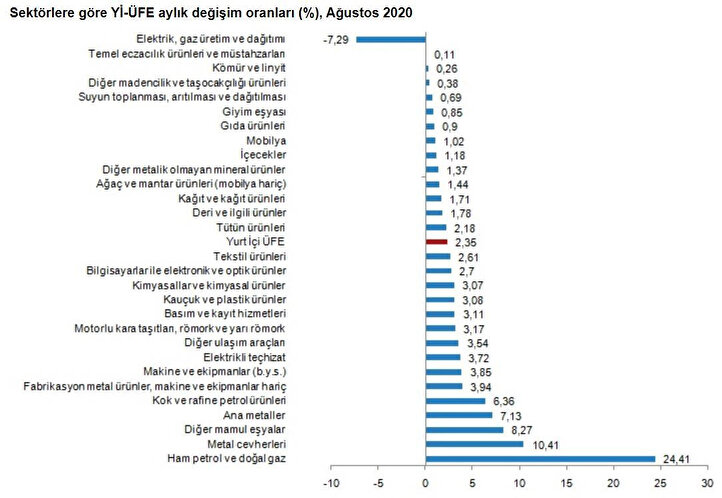 Ağustosta fiyatı en çok artış gösteren diğer ürünler, yüzde 14,83 ile patlıcan, yüzde 14,65 ile mücevher (altın), yüzde 11,81 ile kabak, yüzde 8,45 ile şans oyunları, yüzde 7,60 ile fasulye, yüzde 5,75 ile sarımsak, yüzde 5,41 ile bira ve yüzde 5,05 ile kıvırcık oldu.