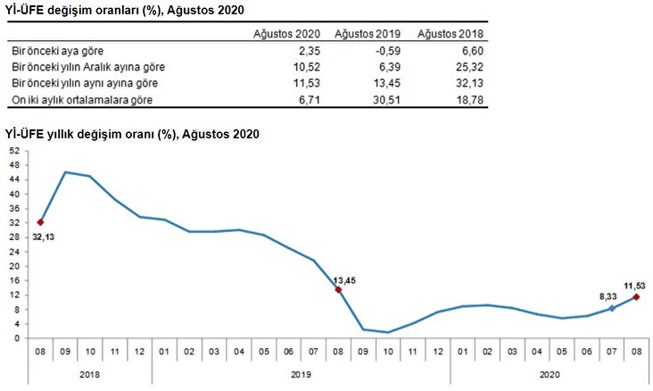 Türkiye İstatistik Kurumu ağustos ayı enflasyon rakamlarını açıkladı. TÜİK tarafından paylaşılan verilere göre, ağustos ayı itibarıyla tüketici fiyatları yüzde 11,27, yurt içi üretici fiyatları yüzde 6,71 arttı. Tüketici fiyatları bazında ağustosta en yüksek fiyat artışı yüzde 25,17 ile salatalıkta gerçekleşirken, en çok ucuzlayan ürün yüzde 19,63 ile erik oldu.