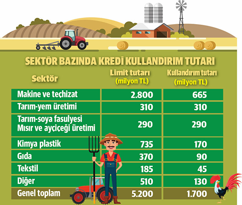 Ortak açıklamada, “Bu paketle istihdam katkı oranı ve ihracat/döviz geliri potansiyeli yüksek olmasına karşın, ithalat bağımlılığı olduğu için ülkemizin dış ticaret açığı vermesine sebebiyet veren sanayi sektöründe yer alan, hammadde-ara malı üreten, makine imalatı yapan ve yerli makine alımı yapan firmaların yeni yatırımları ve yatırım sonrasında ihtiyaç duyacakları işletme kredileri ile soya, ayçiçeği, mısır ve yem üretiminin desteklenmesine yönelik yatırım ve işletme kredileri kullandırılması hedeflenmiştir” denildi.
