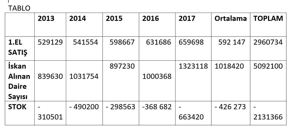 Türkiye istatistik Kurumu (TÜİK) verileri üzerinden birinci el satış konut üretimi ve satışı üzerinden yapılan çalışmaya göre, Türkiye’de 3,5 yıllık konut stoğu bulunuyor.