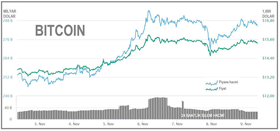 Kripto para piyasalarında hareketlilik devam ediyor. Haftanın ilk işlen gününde bitcoin fiyatı merak ediliyor. ABD başkanlık seçimlerinde Joe Biden'ın seçildiğinin kesinleşmesi üzerine 15,000 doların altına çekilerek 14,599 dolara kadar gerileyen Bitcoin, yeni haftanın başında yeniden 15,000 doları aşarak 15,601 doları gördü.