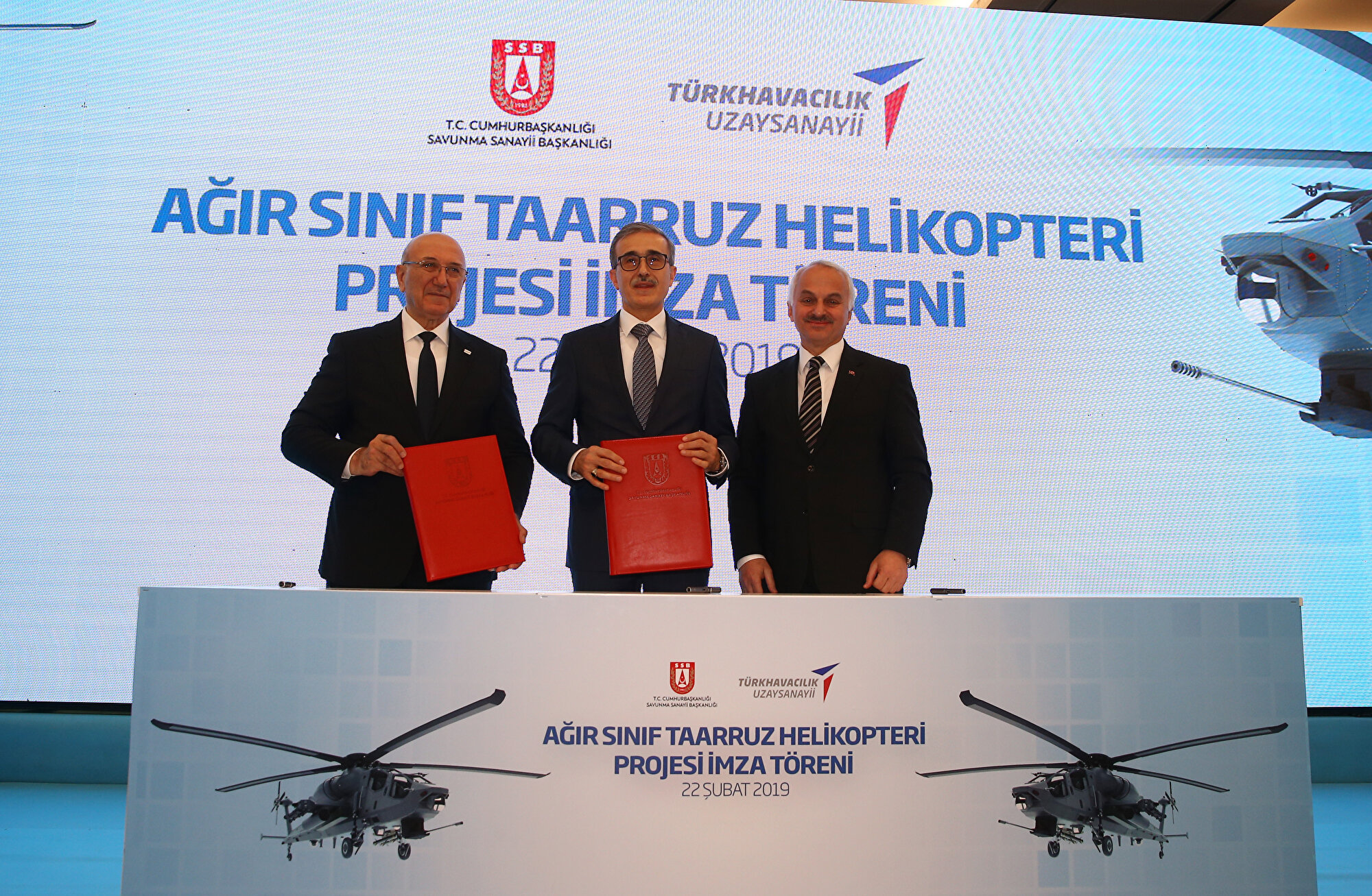 Savunma Sanayii Başkanlığı (SSB) ile Türk Havacılık ve Uzay Sanayii AŞ (TUSAŞ) arasında Ağır Sınıf Taarruz Helikopter Projesi Sözleşmesi imzalandı.